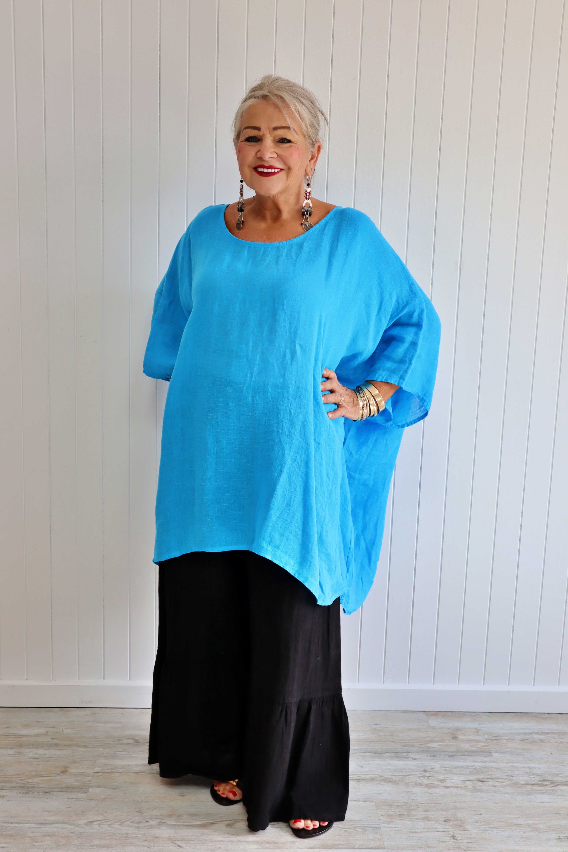 The wide legs, crafted from 100% linen, provide a soft and easy-to-wear experience, Three Tiered Pants ensuring you stay comfortable throughout the day. These come in a range of vibrant block colours, allowing you to express your personality and mix and match with your favorite tops.